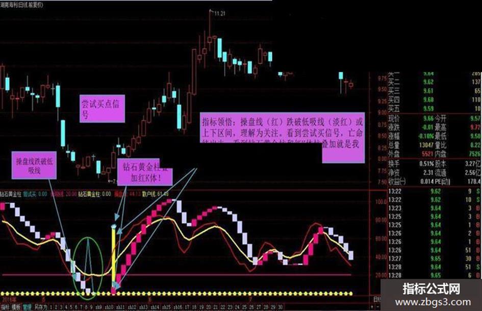 钻石黄金柱:IF(CROSS(出击,0.01),72,0),STICK,COLORYELLOW,LINETHICK9;
