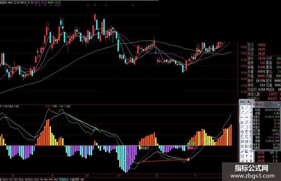 DRAWTEXT(二次金叉,-0.1,' 二次金叉'),COLORFF00FF;