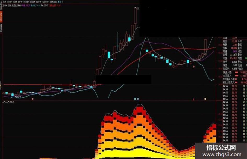 当满足条件人气>=0时,在(人气-人气*0.8)和(人气-人气*0.95)位置之间画柱状线,宽度为5,0不为0则画空心柱. COLOR00FFFF