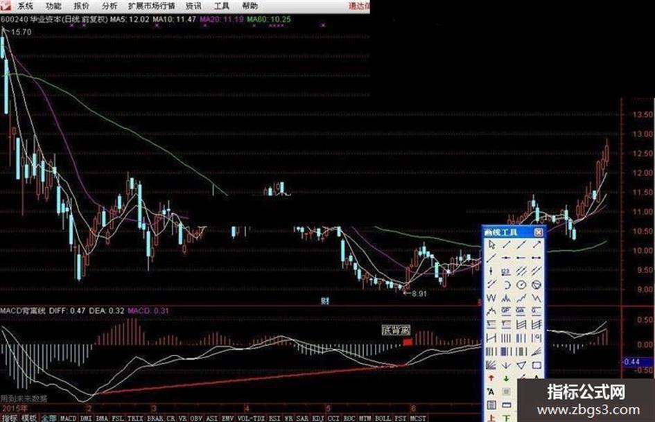DRAWLINE(A1=0,DEA,底背离,DEA,0),COLORRED,LINETHICK2;