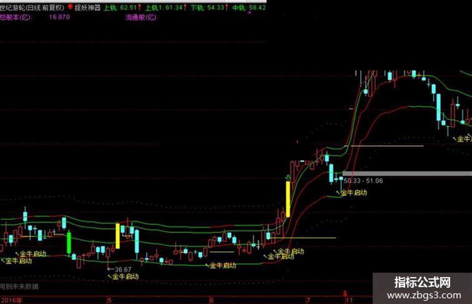 {STICKLINE((CLOSE>=中轨) AND (CLOSE>=OPEN),HIGH,LOW,0,0),COLORRED;}