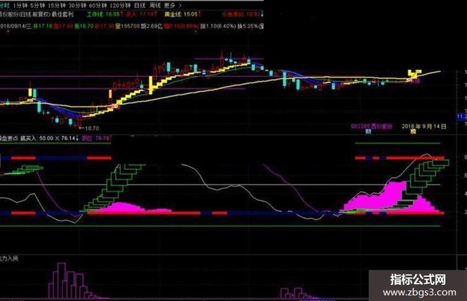高抛低吸:=STICKLINE((((((HIGH-IF((CLOSE>OPEN),CLOSE,OPEN))/(HIGH-LOW))*VOL)>((ABS((OPEN-CLOSE))/(HIGH-LOW))*VOL)) AND ((((HIGH-IF((CLOSE>OPEN),CLOSE,OPEN))/(HIGH-LOW))*VOL)>(((IF((CLOSE>OPEN),OPEN,CLOSE)-LOW)/(HIGH-LOW))*VOL))),0,(((HIGH-IF((CLOSE>OPEN),CLOSE,OPEN))/(HIGH-LOW))*VOL),2,0);