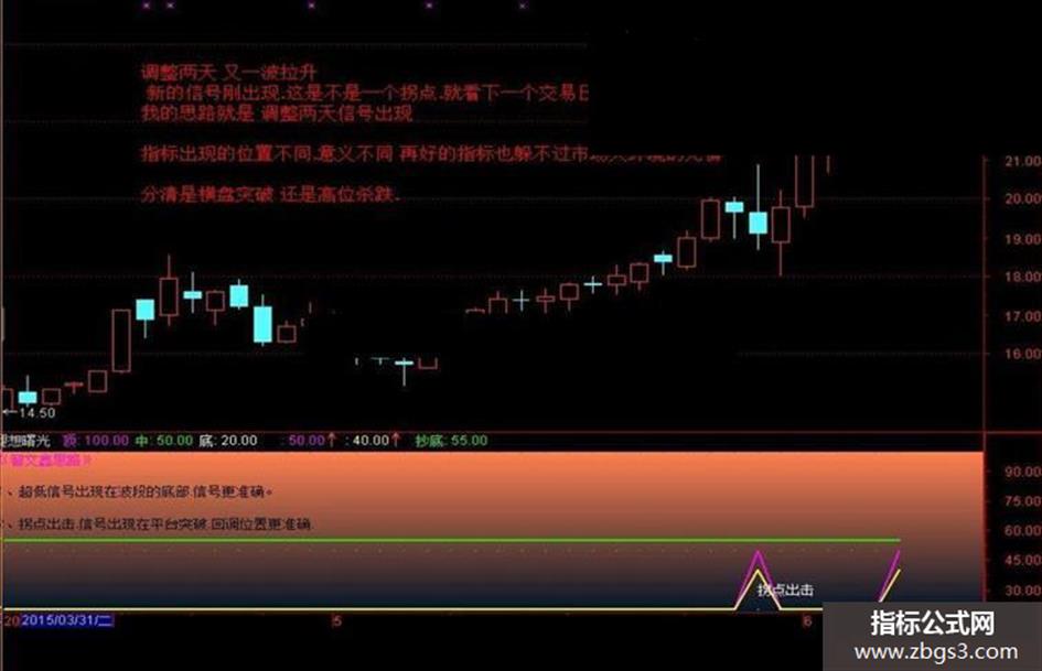 谨记: 看指标出现在什么位置后再进行操作. 所以信号在出现的当天 可以关注.如果第二天 止跌收阳.则可以少量建仓. 如果信号出现第二天 继续下跌.则可以积极关注.因为主力庄家的操作手法不同. 但是意图不变.而我设计指标的思路就是调整两天.信号就会出现.