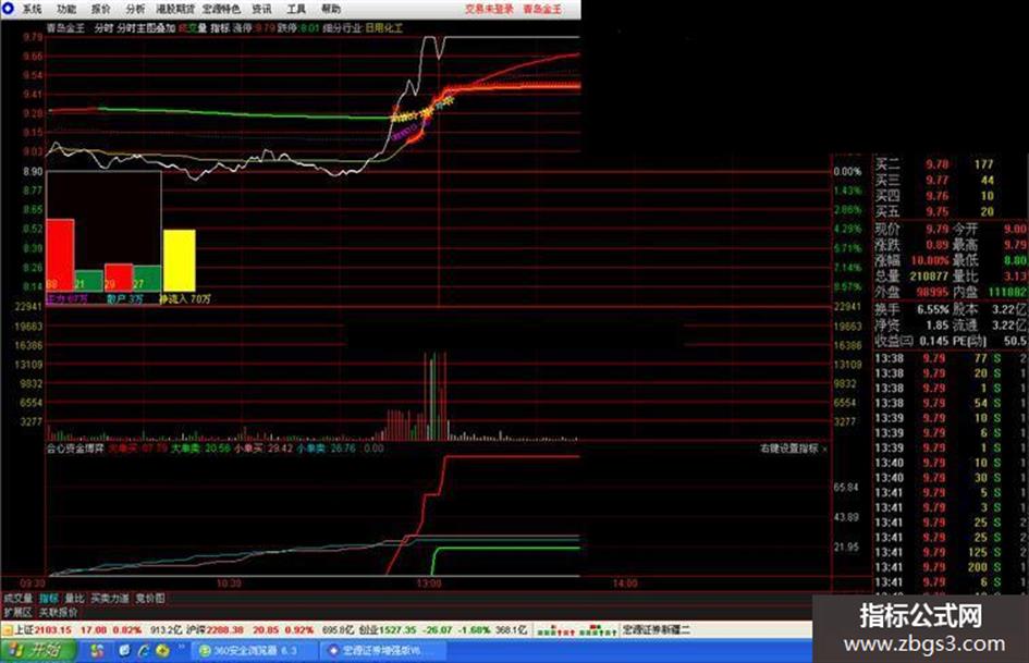指标说明:大单买(红线)超过了任何线这样的股就有可能拉涨停,连续几天大单买都在大单卖之上(最好没有大单卖)这样的股你的注意了。