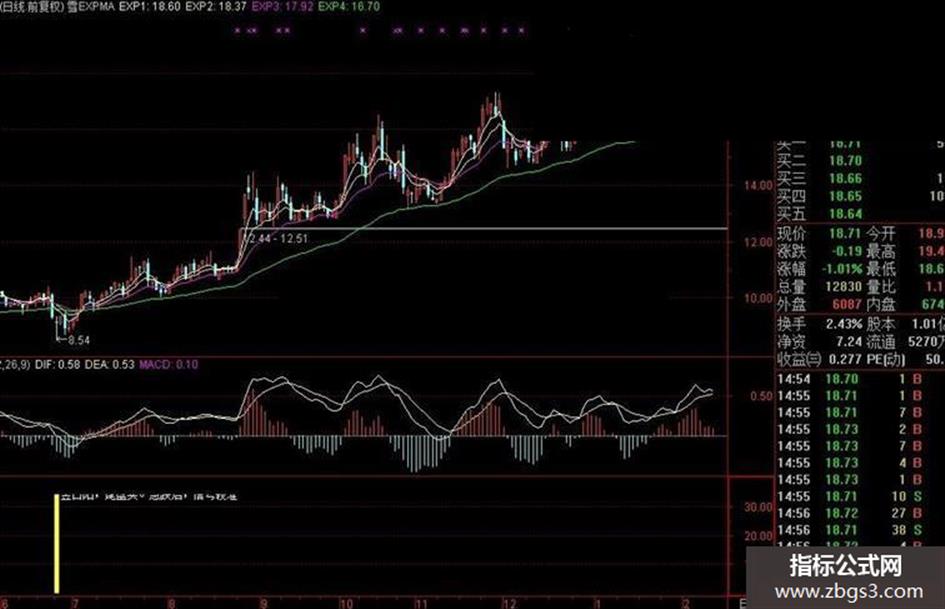 AA6:=(主买1-(-主卖1))/主买1;STICKLINE(大底>0 AND C<O ,0,CC,4,0),COLORYELLOW;DRAWTEXT(大底>0 AND C<O,CC,'*翌日阳,尾盘买。急跌后,信号较准');