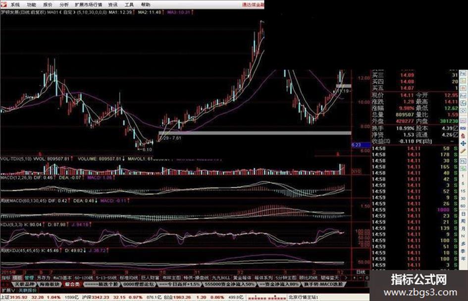 应该是第一次在指标公式交流区发帖吧,想了下,还是用个常用,而且效果比较好的,一般不外MACD和KDJ,尤其是将两个指标都转化为周KDJ和周MACD后,常常对后期可以进行一些预判,当周MACD或者周KDJ也或者当龙系MACD将要发生金叉时候,而此时股价常常处于低位,即将上涨的前奏。 1 周期为日,KDJ,MACD整体图片效果