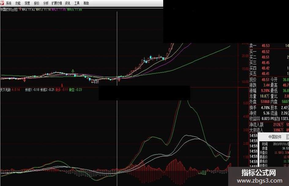 用法是:红线从绿上上出来,赚大钱的机会来了,简单说变双线买入赚线,变单绿线无条件走人,大家可以看到,没有未来,极为准确,是极品中的极品,按这个副图操作,能不赚钱真的很难