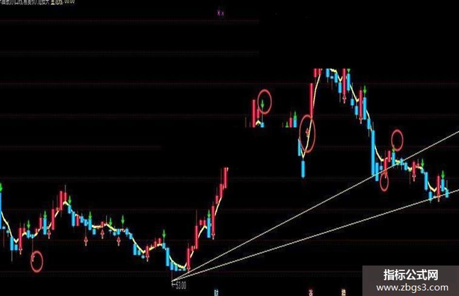 用法说明:做股票就是做上升趋势的票,只有这样才能有钱赚,赚大钱。本主图就是要告诉你,买点在金龙线以上才是最佳买点,跌破金龙线要立马出局。也可以理解为:红K线柱子持股,蓝K线柱子持币。当然,要防止庄家洗盘洗出局,须结合副图操作,不跌破白线不出局,以赚取大波利润。此指标是对龙年主图的进一步优化,直观美观,实战性更强。
