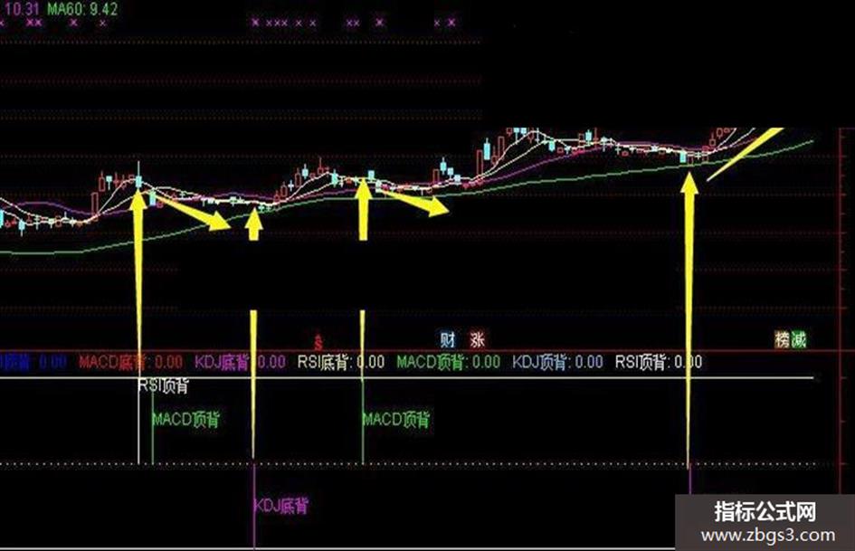 RSI顶背:IF(D3>0,50,0),COLORFFFFFF,POINTDOT;