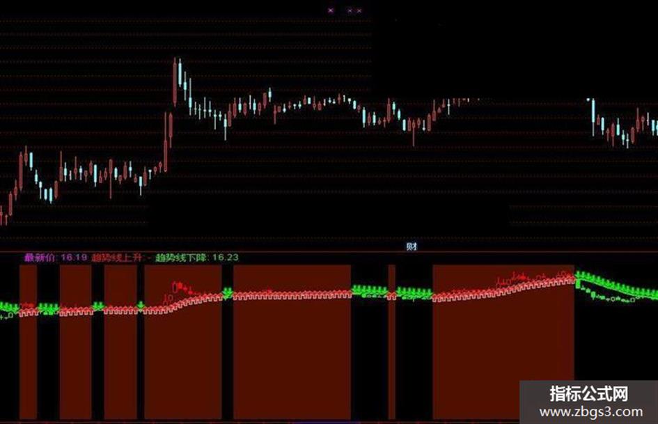 趋势线上升:IF(HS,趋势线,DRAWNULL),LINETHICK2,COLORRED;