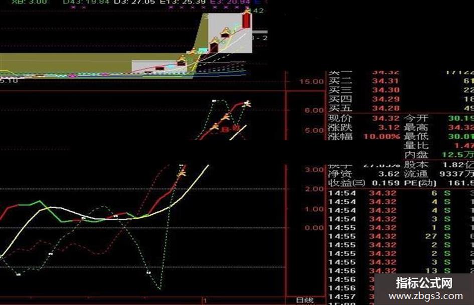 这个指标是个简单的思考,用于短线小波段,利用7天股价(红绿线),3天均线,不同的折线斜率,测量加速度,0是强弱的分界,2、-2之间振荡区间,-2以下是超跌区,反弹随时发生,2以上超买,尤其注意顶底背离”进一步利用这一原理,参考OBV原理,分别用阳量,阴量作了两条线,大于0,是一种强势的量,尤其符号‘B’,在阴线量能充分释放,阳量反击,尤要注意。如果反击不能穿越阴量,且持续要注意缩量程度