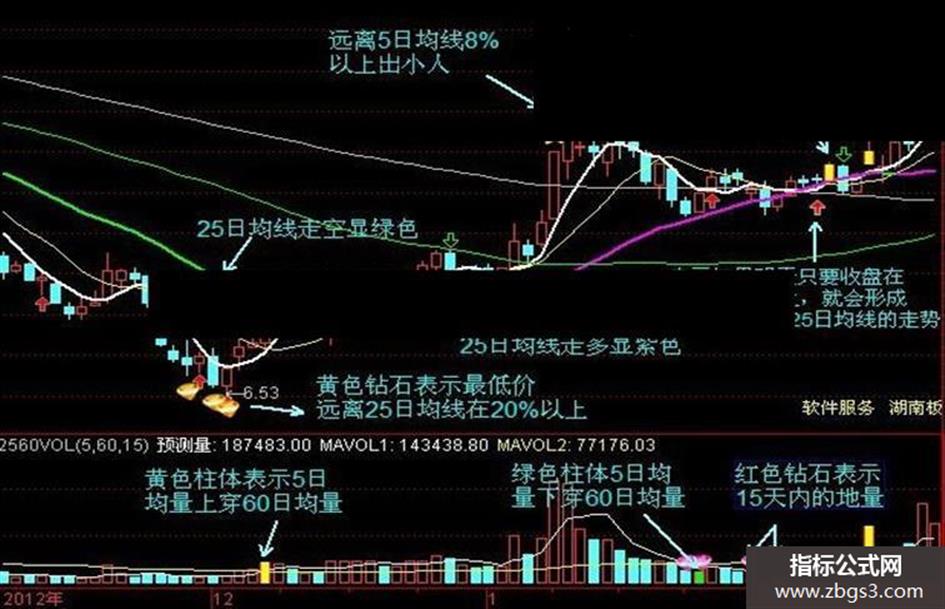 3)K线踩25日均线起动时,前波5均量蹭上60均量称为做量,波段机会,形态已成;