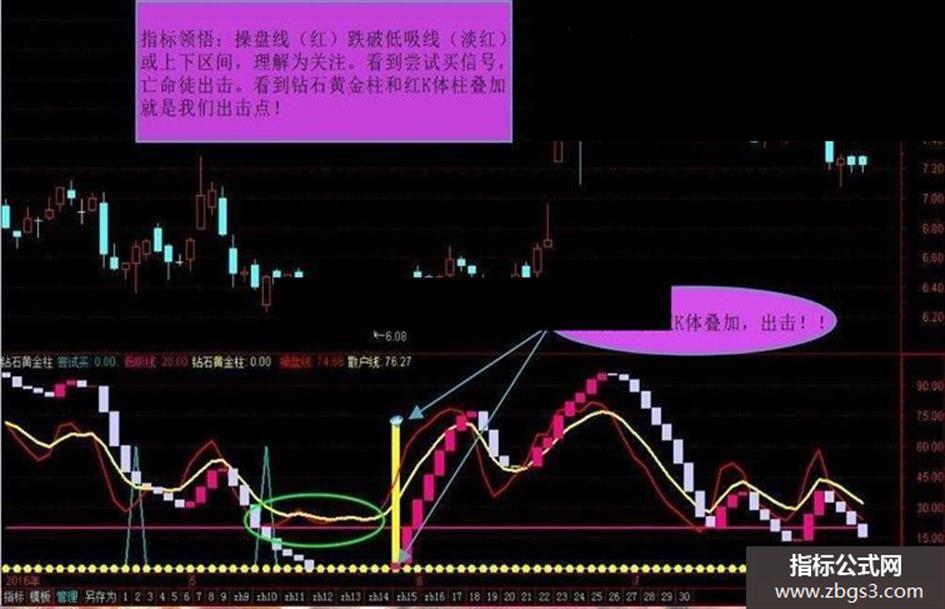 3、当钻石黄金柱与红K线叠加时,应果断出击。