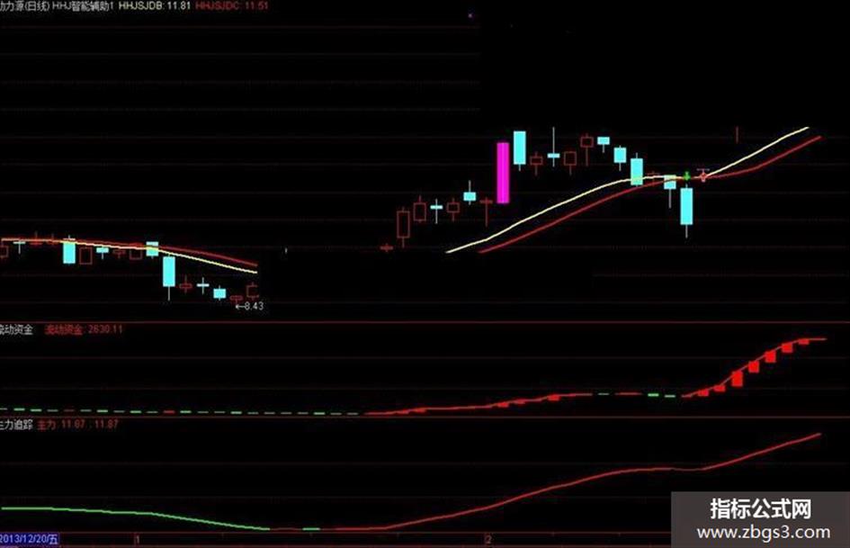 主力追踪顾名思义:就是主力的加仓趋势,这里强调的是个趋势。此线如出现红色,即主力是持续加仓中(红线与0线的夹角越大越好,30度角以上最佳),红线趋势变平,开始勾头向下变绿,就是主力资金在持续流出,须及时止损清仓。 流动资金指标:这个股票公式可以观察一天流动资金是往好还是往坏,红色柱体,资金持续流入;反之,绿色柱体,持续流出。最好结合支撑位和压力位来判断买点和卖点,最后本人总结一句话:“红肥绿瘦” 因为股价的上升必须有资金和量的配合,所以大家一定要好好利用这个参数。