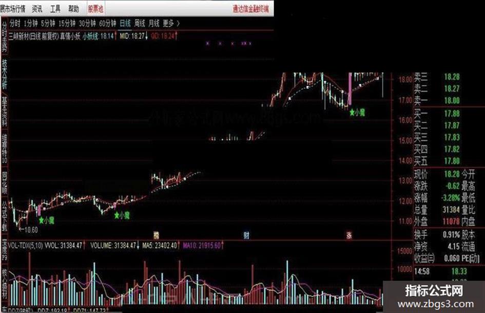小妖线:EMA(CLOSE,20),COLORCYAN,DOTLINE;