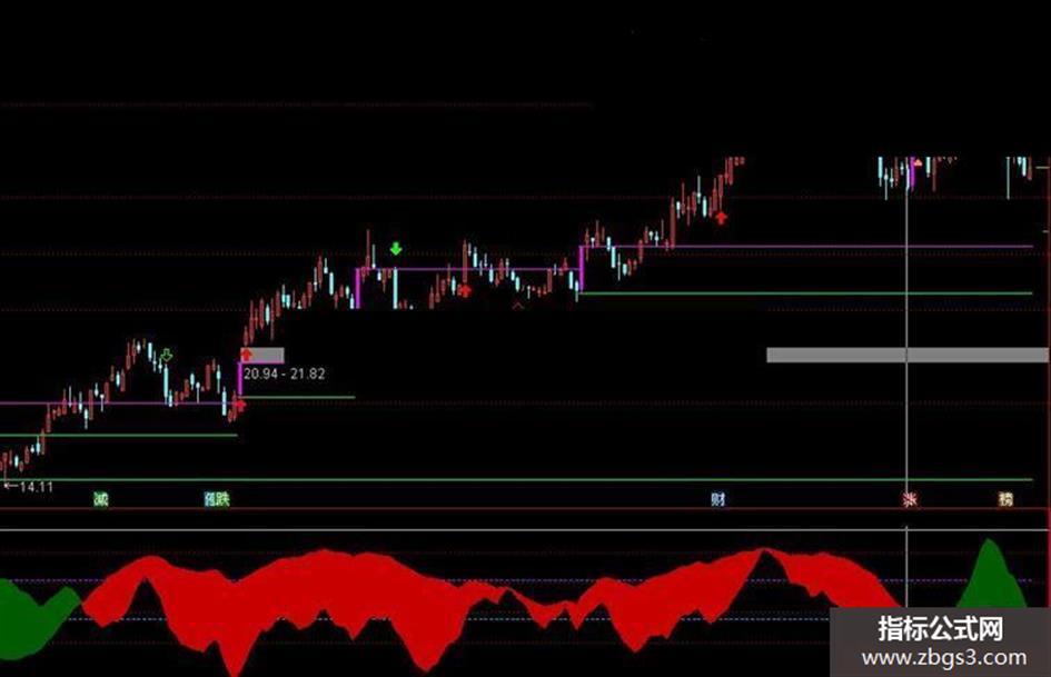 DRAWBAND(趋势,RGB(200,0,0),WRF,RGB(0,90,0));
