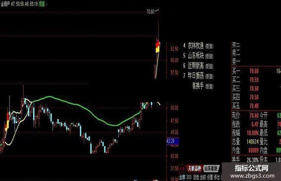 观望:IF(A7=A9,A7,DRAWNULL),COLORGREEN,LINETHICK2;