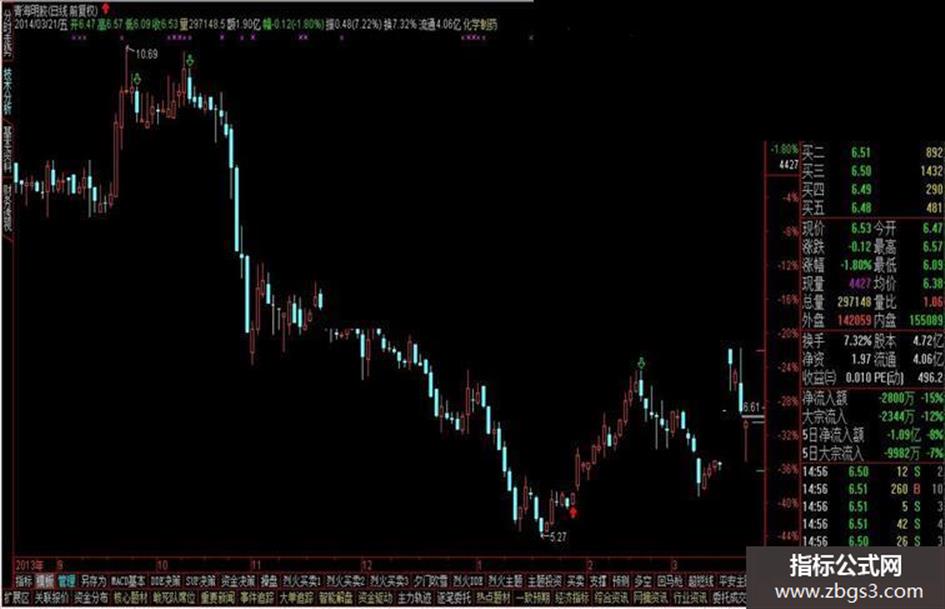 在分析图(K线图)里选择该专家系统公式,就可以在K线图里显示专家系统里的买卖点,一目了然。