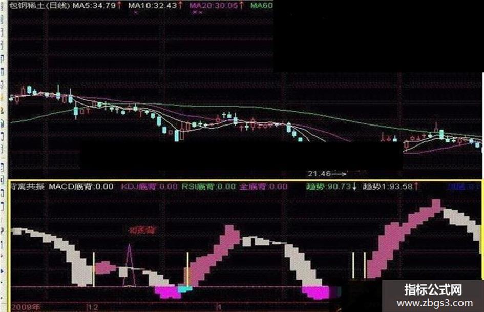 全底背:IF(MACD底背 OR KDJ底背 OR RSI底背,50,0),COLORFF00FF;