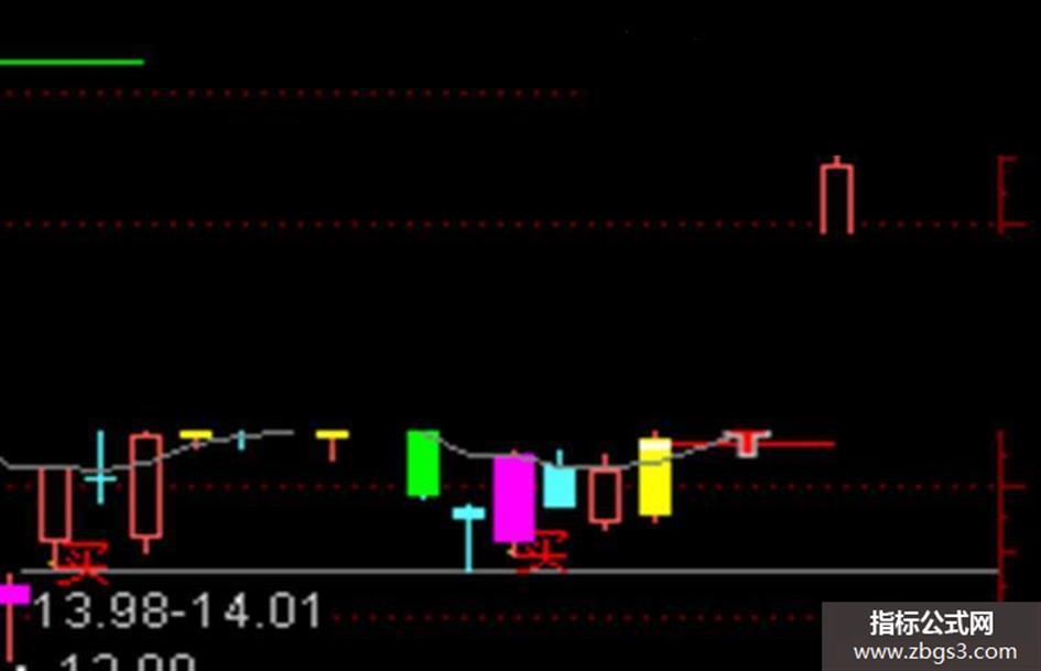 STICKLINE(CROSS(A1X,0)OR CROSS(0,A1X),REF(EMA(C,14),1),REF(EMA(C,14),1)*0.998,2,0)COLORWHITE;
