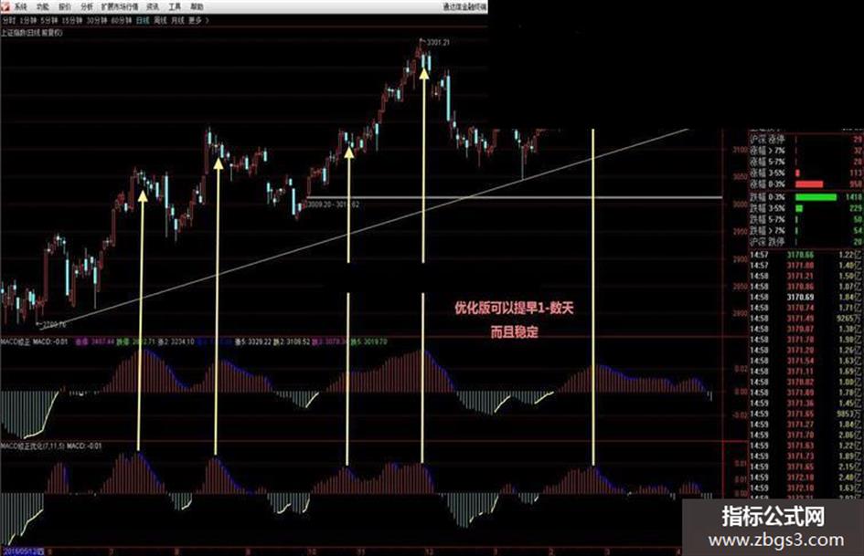 macd修正还算可以的一个指标,今天给出个人的优化版本,喜欢的就下载吧,还是比较稳定的,信号更加及时,转向可以提前1-数天,应该说是不错的工具的。