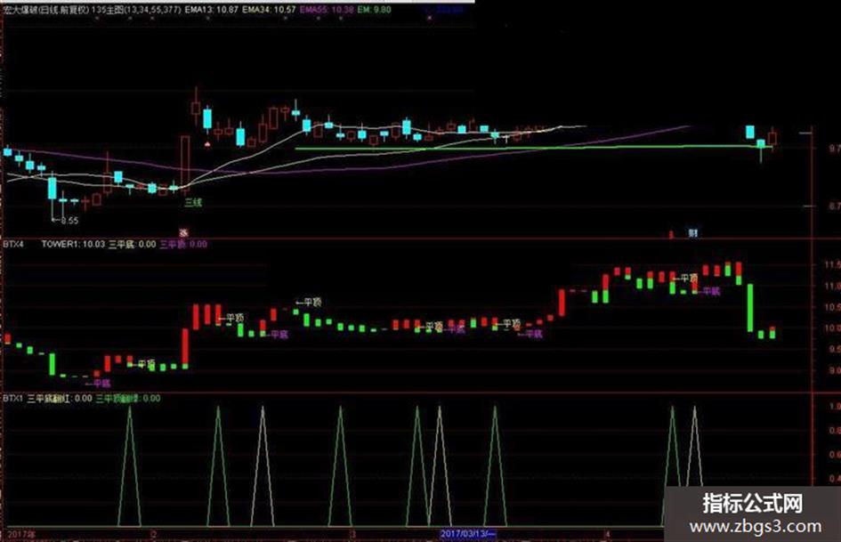 三平顶:COUNT(TOWER1=REF(TOWER1,1),2)=2 AND VAR1A,NODRAW;