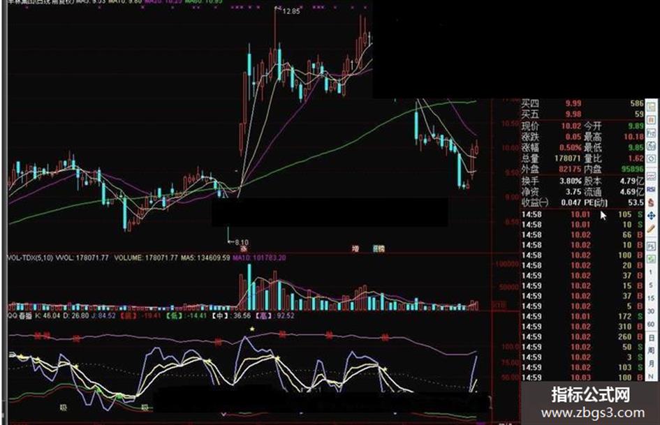 DRAWTEXT(CROSS(中,J) AND M<=80 ,高,'抛'),COLORRED;