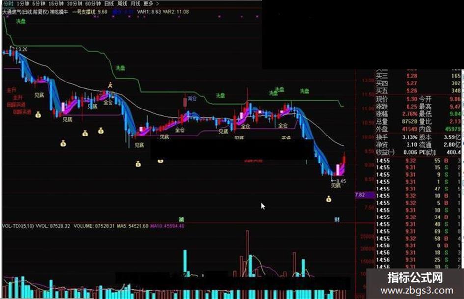 DRAWTEXT(CROSS(一号支撑线1,上线1),H*1.08,'洗盘'),COLOR00FF00;