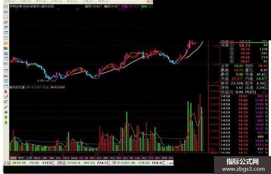 五量比:VOL/REF(MA(VOL,5),1),COLORMAGENTA,NODRAW;