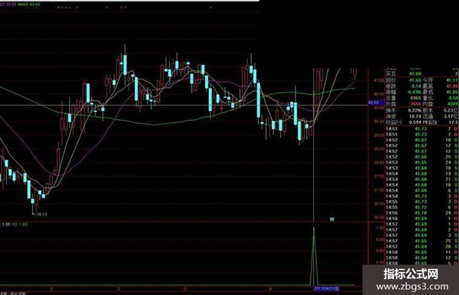 XA_41:=BARSLAST(REF(XA_35,1)<REF(XA_36,1) AND XA_35>XA_36)<=2 AND BARSLAST(CROSS(XA_37,XA_38))<=5 AND BARSLAST(XA_32>REF(XA_32,1))<=20;