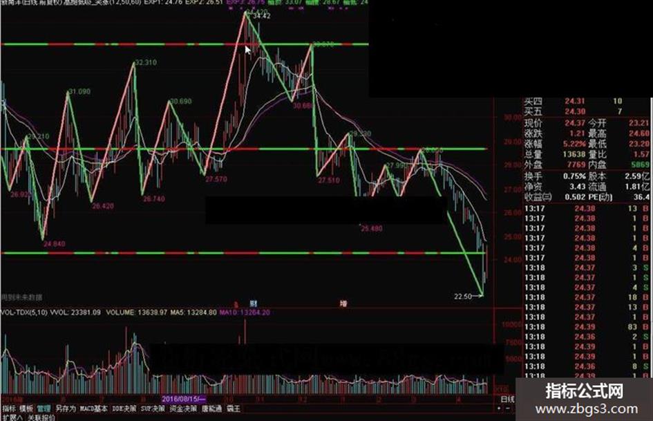 NOTEXT下笔划线:DRAWLINE(顶,H,底,L,0),COLORLIGREEN,LINETHICK3;