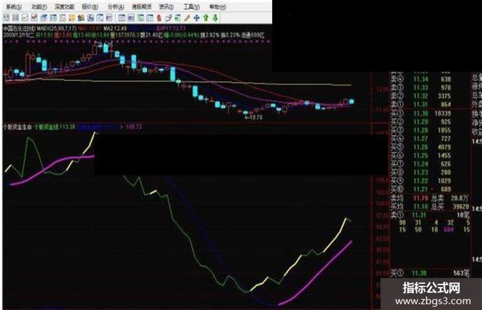 个股资金线:MA(C,1)/MA(REF(C,18),18)*100,COLORGREEN; 资金生命线:MA(FORCAST(个股资金线,20),6),COLORBLUE; IF(个股资金线>REF(个股资金线,1),个股资金线,DRAWNULL),LINETHICK3,COLOR00FFFF; IF(资金生命线>REF(资金生命线,1),资金生命线,DRAWNULL),LINETHICK3,COLORMAGENTA;