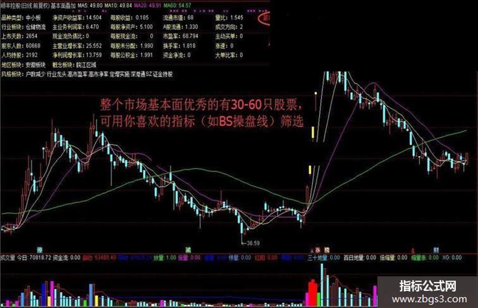 这一点我也想到了,并且已经做出来了一个基本面指标,叫做基本面叠加主图指标。基本面叠加就是把我给你的基本面公式,任意叠加到任何主图指标上,想贴哪里就贴哪里。基本面叠加有一个主图和一个选股指标,基本面叠加主图自动对股票评级,有优秀级、较好两个级别,并且在指标上面的中间位置标识出来。