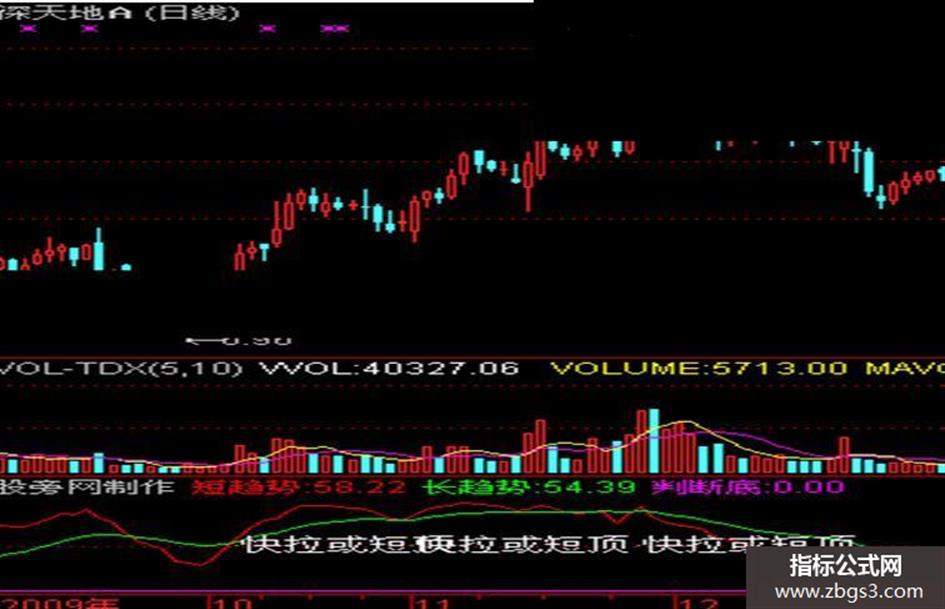 DRAWTEXT(CROSS(短趋势,长趋势)AND 长趋势>25 AND 长趋势>REF(长趋势,1),50,'快拉或短顶');