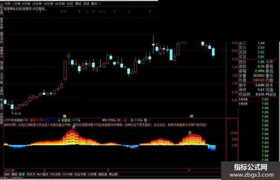 红柱区间就是大资金进入该股控盘拉升期,蓝柱区间是则是大资金弃盘离场休息期,如果红柱下穿变蓝时,全仓沽空,能有效规避股价长期下跌风险!