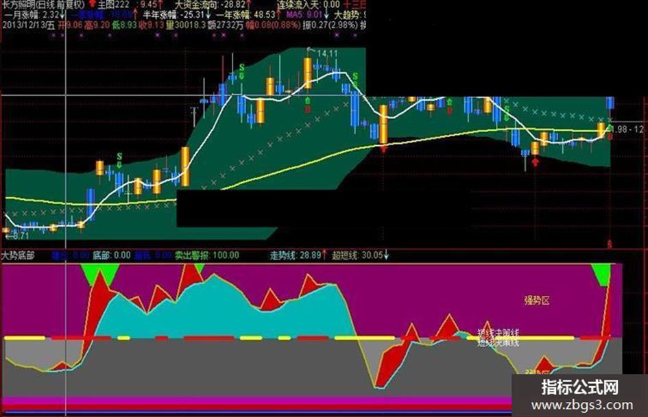 DRAWBAND(走势,RGB(0,180,180),50,RGB(130,130,130));
