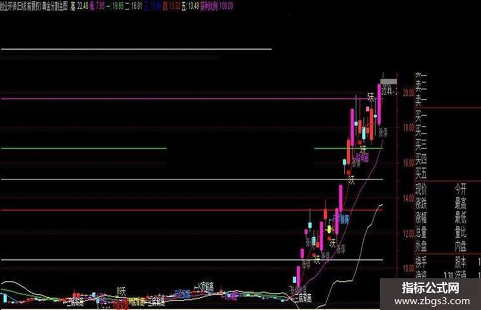 2,一条条的横向黄金分割线给出了我们直观的区间景象,三条操作线,分水岭,变色多空线,也让我们能在股价的走势上作出多空判断.根据破位出,突破入的一般操作模式,找比较精确的操作思路.