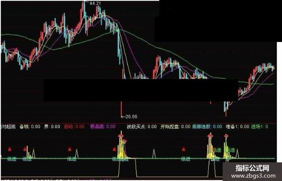 极品底:IF((MA(C,5)-C)/C>0.04 AND (MA(C,10)-MA(C,5))/MA(C,5)>0.04,23,0),