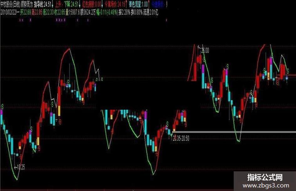 上升:IF(指导线>REF(指导线,1),指导线,DRAWNULL),COLORRED,LINETHICK2;