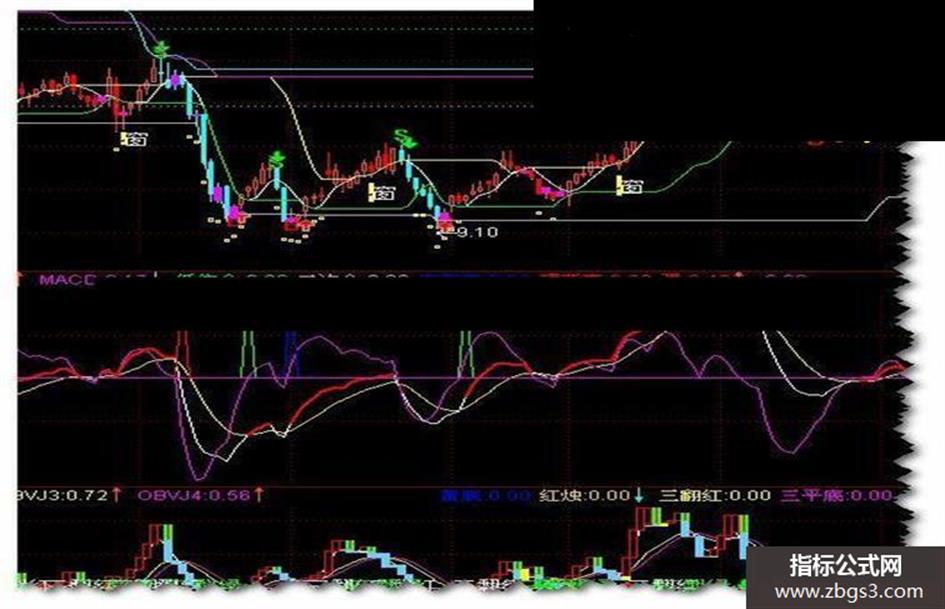 底背离:REF(CLOSE,A1+1)>CLOSE AND DIFF>REF(DIFF,A1+1) AND CROSS(DIFF,DEA);