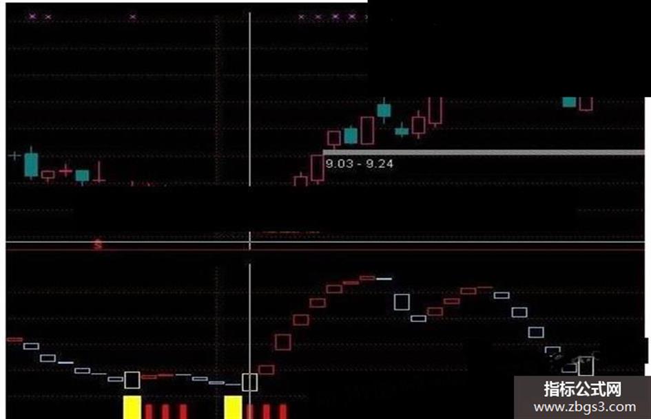 VAR1:=REF(CLOSE,1);VAR2:=SMA(MAX(CLOSE-VAR1,0),7,1)/SMA(ABS(CLOSE-VAR1),7,1)*100;DRAWTEXT(FILTER(REF(VAR2,1)<20 AND VAR2>REF(VAR2,1),5),L*0.99,'↖特准抄底'),COLORGREEN;BIAS1:=(C-MA(C,6))/MA(C,6)*100;BIAS2:=(C-MA(C,12))/MA(C,12)*100;BIAS3:=(C-MA(C,24))/MA(C,24)*100;BIAS:=(BIAS1+2*BIAS2+3*BIAS3)/6;乖离:=MA(BIAS,3);DRAWTEXT(CROSS(BIAS,乖离) AND 乖离<-9.5,L*0.96,'↖红柱抄底'),COLORRED;红柱:(CROSS(BIAS,乖离) AND 乖离<-9.5),COLORRED,NODRAW;特准抄底:(FILTER(REF(VAR2,1)<20 AND VAR2>REF(VAR2,1),5)),COLORGREEN,NODRAW;合成买进买:=IF("KDJ.J"<0,10,0);VAR1:=(2*CLOSE+HIGH+LOW)/4;VAR2:=LLV(LOW,5);VAR3:=HHV(HIGH,5);VAR4:=EMA((VAR1-VAR2)/(VAR3-VAR2)*100,5);MA1:=MA(VAR4,2);AA:STICKLINE(VAR4>MA1,VAR4,MA1,3,1),COLORRED;BBB:STICKLINE(VAR4>MA1 AND REF(VAR4,1)<30,VAR4,MA1,3,1),COLORRED;STICKLINE(VAR4<=MA1,VAR4,MA1,3,1),COLORFFCC66;XXX:=STICKLINE(BBB,VAR4+5,MA1-4,3,1),COLORYELLOW;STICKLINE(FILTER(XXX ,5) ,VAR4+5,MA1-4,3,1),COLORYELLOW;Y1:=LLV(L,17);Y2:=SMA(ABS(L-REF(L,1)),17,1);Y3:=SMA(MAX(L-REF(L,1),0),17,2);Q:=-(EMA(IF(L<=Y1,Y2/Y3,-3),1));STICKLINE(CROSS(Q,0),15,0,4,0), , COLORYELLOW;强拉升: IF(CROSS(Q,0),1,0),COLORYELLOW; Q1:= (CLOSE-MA(CLOSE,40))/MA(CLOSE,40)*100, , COLOR00FF00,LINETHICK2;STICKLINE(CROSS(Q1,-24),20,0,4,0), , COLORMAGENTA;加强拉升: IF(CROSS(Q1,-24),1,0),COLORMAGENTA;VAR5:=EXPMA(EXPMA(EXPMA((2*CLOSE+HIGH+LOW)/4,4),4),4);天:=( MA((VAR5-REF(VAR5,1))/REF(VAR5,1)*100,2));地:=( MA((VAR5-REF(VAR5,1))/REF(VAR5,1)*100,1));STICKLINE(地>天 AND 地<0,10,0,1,0),COLORRED;开始拉升:STICKLINE(地>天 AND 地<0,10,0,1,0)=1,COLORRED;