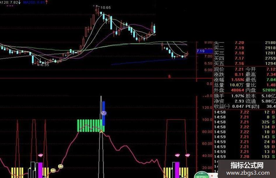 买入信号:=STICKLINE(CROSS(股价趋势,底部警戒),0,30,3,0),COLORWHITE;
