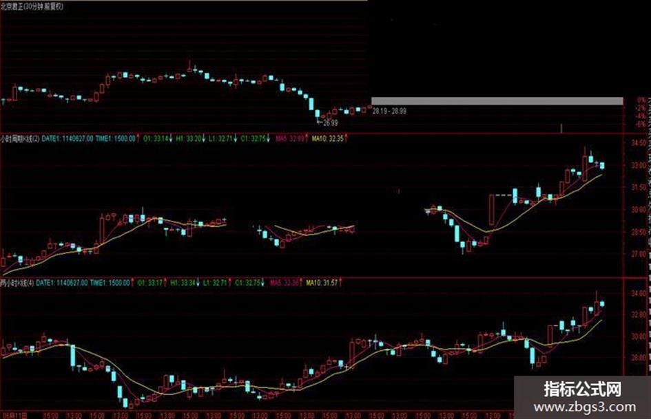 或者,你在主题上显示小时K线,而在副图上分别显示2、4、6小时K线。