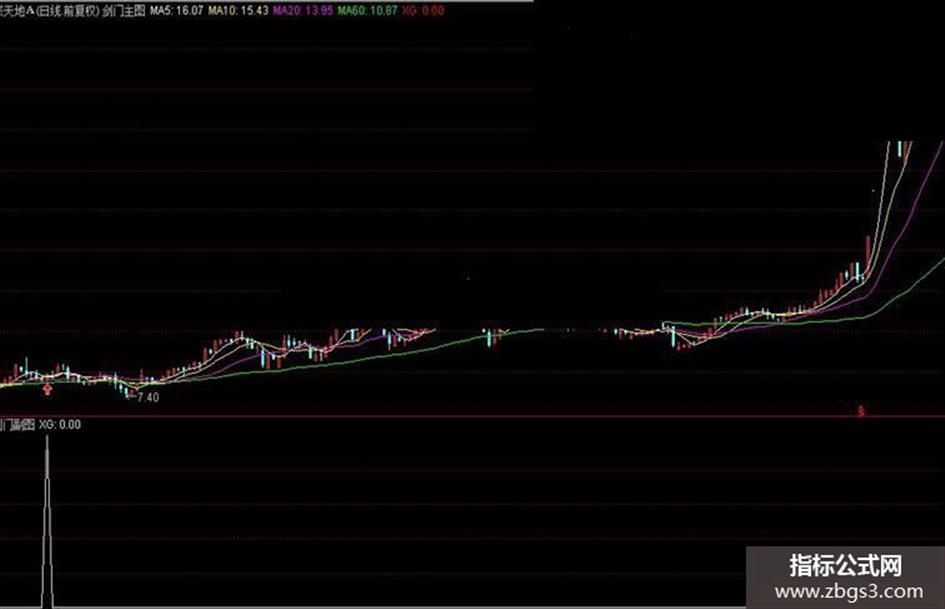 做股票和做任何事一样,都要因势而谋,应势而动,顺势而为,找准切入点和着力点。“剑壁门高五千尺,石为楼阁九天开”,这是因势;“黄河西来决昆仑,咆吼万里触龙门”,这是应势;“剑门雄关可锁喉,连山绝险三十里”,这是顺势。剑门指标是一个趋势指标,买入信号出现的地方就是股票操作的切入点和着力点。剑门指标包括主图、副图和选股,也可以做预警。源码奉献,没有未来函数,请大家放心使用! ~用法~ 1.看剑门主图,出现红色箭头图标,可以买入; 2.看剑门副图,出现XG:1和白色三角图形,可以买入。