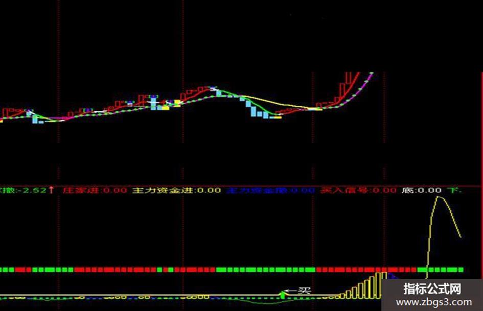 买入个股: IF(CROSS(大主力,抄底信号),20,10), ,LINETHICK2,COLORYELLOW;
