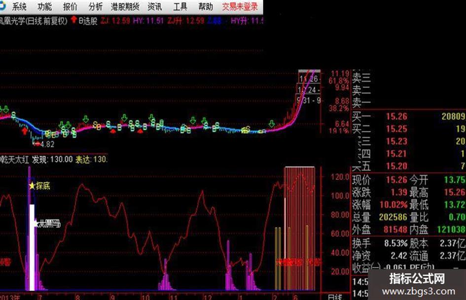 表达:var0*(CLOSE>Var4)*13*10,COLORSTICK;
