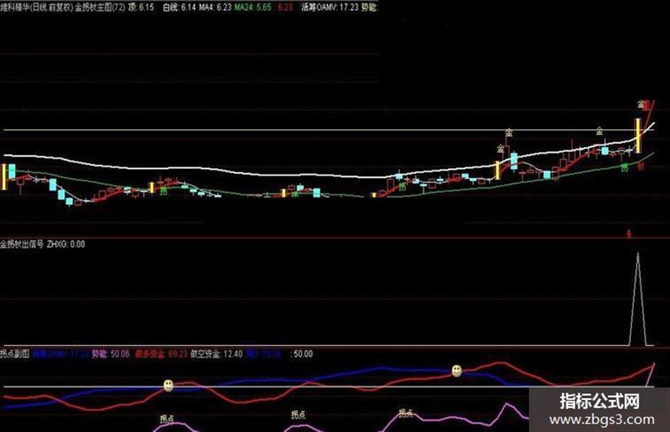 白金主图和金拐杖副图,本人对主副图合并做了一个选股公式,大智慧和通达信通用。