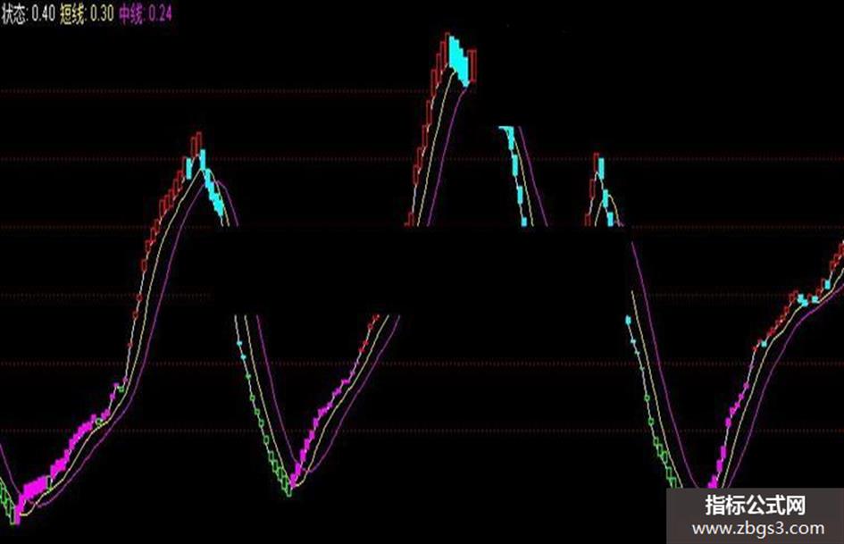 STICKLINE(状态<=0 AND 状态>REF(状态,1),状态,状态*0.9,2.6,0),COLORFF00FF;