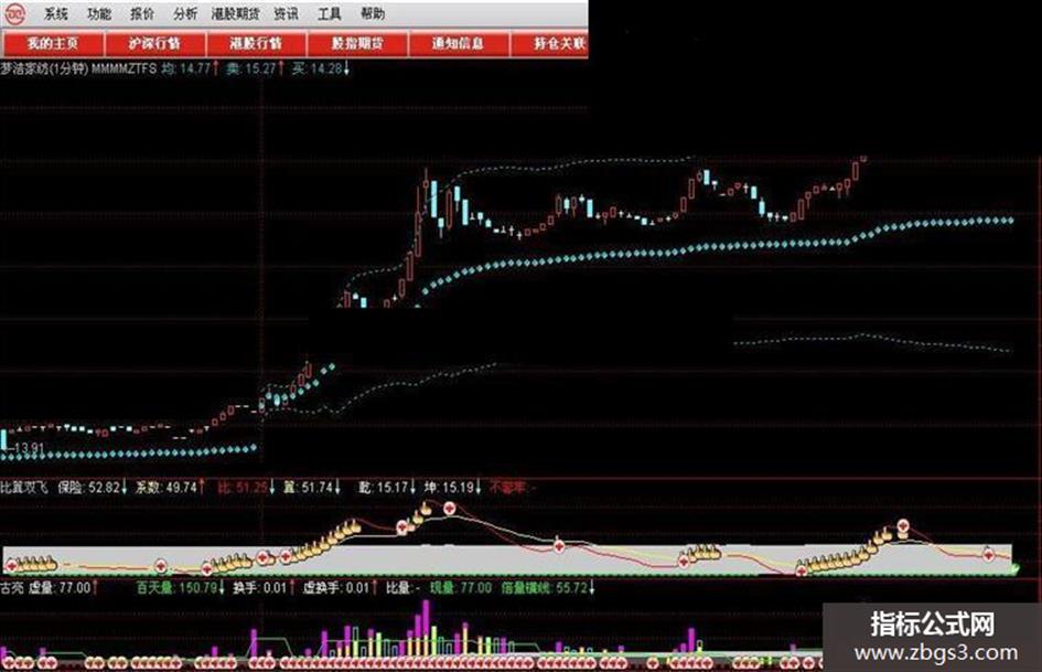 卖:均+(2*SQRT(MA((C-均)*(C-均),A1)))DOTLINE,COLORLIBLUE;