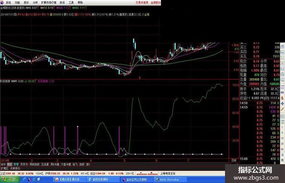 阶段底部:IF(MMR>JJ AND MMR>2 AND C=LLV(C,10) AND L=LLV(L,10),40,0),STICK,COLORAA00BB,LINETHICK3;